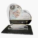 | À poser | Montée sur un bloc d’ardoise naturelle avec socle en plexiglass. Se pose directement sur la pierre tombale, le caveau ou une étagère de columbarium. |